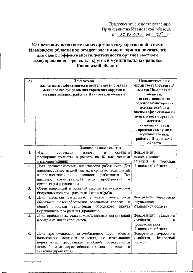 Постановление Правительства Ивановской области от 24.05.2013 N 185-п "Об оценке эффективности деятельности органов местного самоуправления городских округов и муниципальных районов Ивановской области" (вместе с "Положением о порядке проведения мониторинга и оценки значений показателей эффективности деятельности органов местного самоуправления городских округов и муниципальных районов Ивановской области", "Классификацией городских округов и муниципальных районов Ивановской области", "Перечнем исполнительных органов государственной власти Ивановской области, представляющих данные по показателям эффективности деятельности органов местного самоуправления городских округов и муниципальных районов Ивановской области для доклада глав администраций городских округов и муниципальных районов Ивановской области о достигнутых значениях показателей для оценки эффективности деятельности органов местного самоуправления городских округов и муниципальных районов Ивановской области за отчетный год и их планируемых значениях на 3-летний период")
