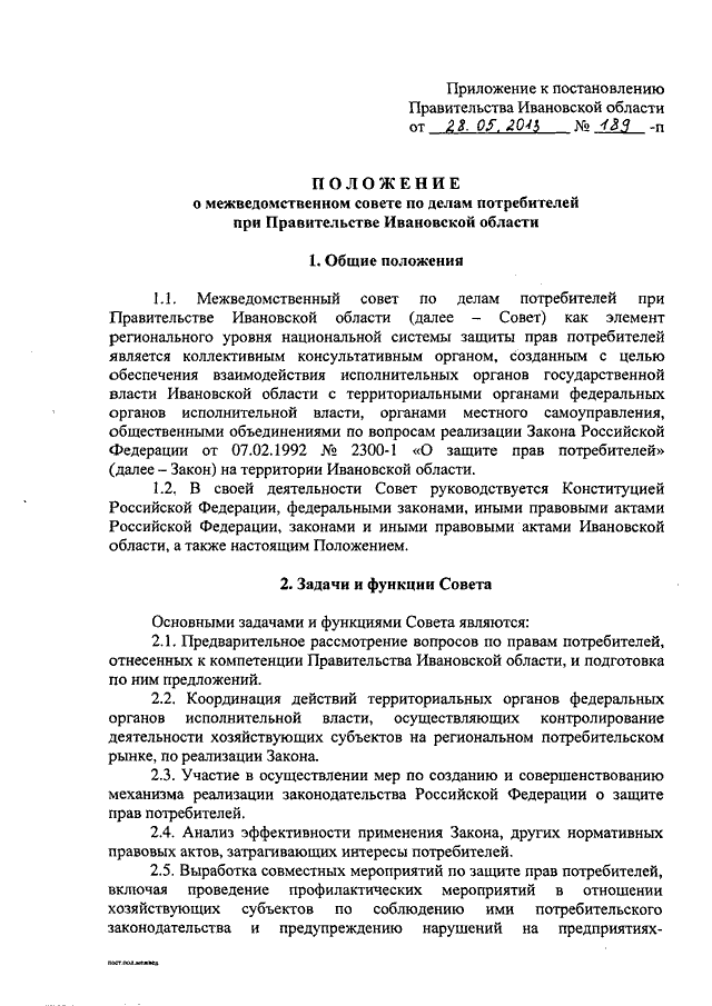 Постановление Правительства Ивановской области от 28.05.2013 N 189-п "Об утверждении Положения о межведомственном совете по делам потребителей при Правительстве Ивановской области"