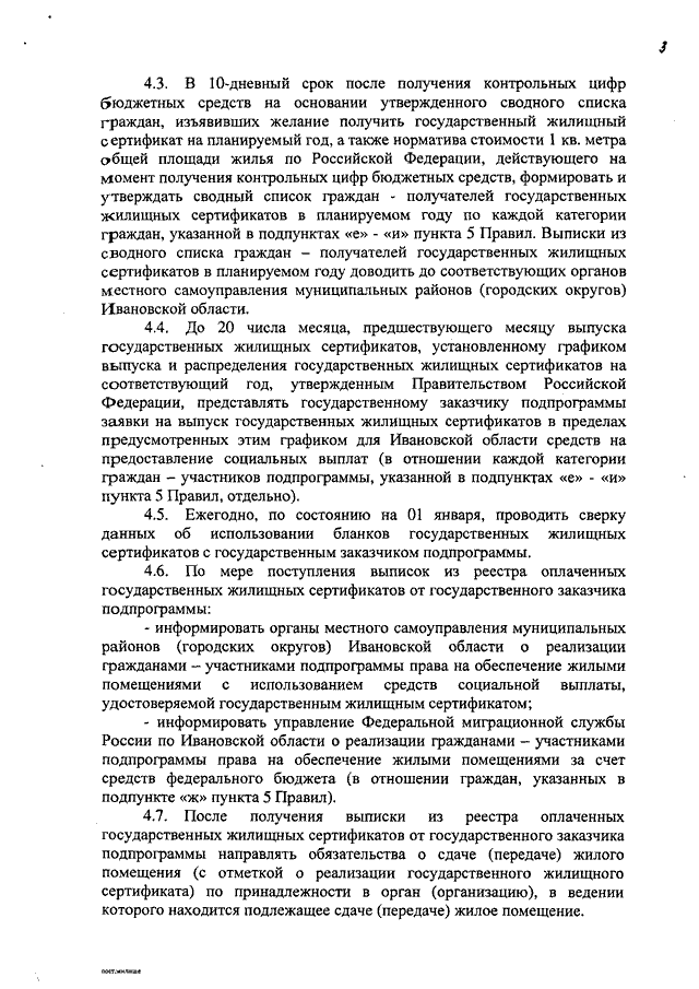 Постановление Правительства Ивановской области от 04.06.2013 N 213-п "О некоторых вопросах реализации на территории Ивановской области подпрограммы "Выполнение государственных обязательств по обеспечению жильем категорий граждан, установленных федеральным законодательством" федеральной целевой программы "Жилище" на 2011 - 2015 годы" (вместе с "Порядком организации работы по проверке органами местного самоуправления муниципальных районов (городских округов) Ивановской области документов, представляемых гражданами при подаче заявления (рапорта) об участии в подпрограмме "Выполнение государственных обязательств по обеспечению жильем категорий граждан, установленных федеральным законодательством" федеральной целевой программы "Жилище" на 2011 - 2015 годы, и уведомления граждан о признании либо отказе в признании их участниками данной подпрограммы", "Порядком оформления и выдачи государственных жилищных сертификатов в рамках реализации подпрограммы "Выполнение государственных обязательств по обеспечению жильем категорий граждан, установленных федеральным законодательством" федеральной целевой программы "Жилище" на 2011 - 2015 годы", "Порядком ведения реестра выданных государственных жилищных сертификатов в рамках реализации подпрограммы "Выполнение государственных обязательств по обеспечению жильем категорий граждан, установленных федеральным законодательством" федеральной целевой программы "Жилище" на 2011 - 2015 годы")