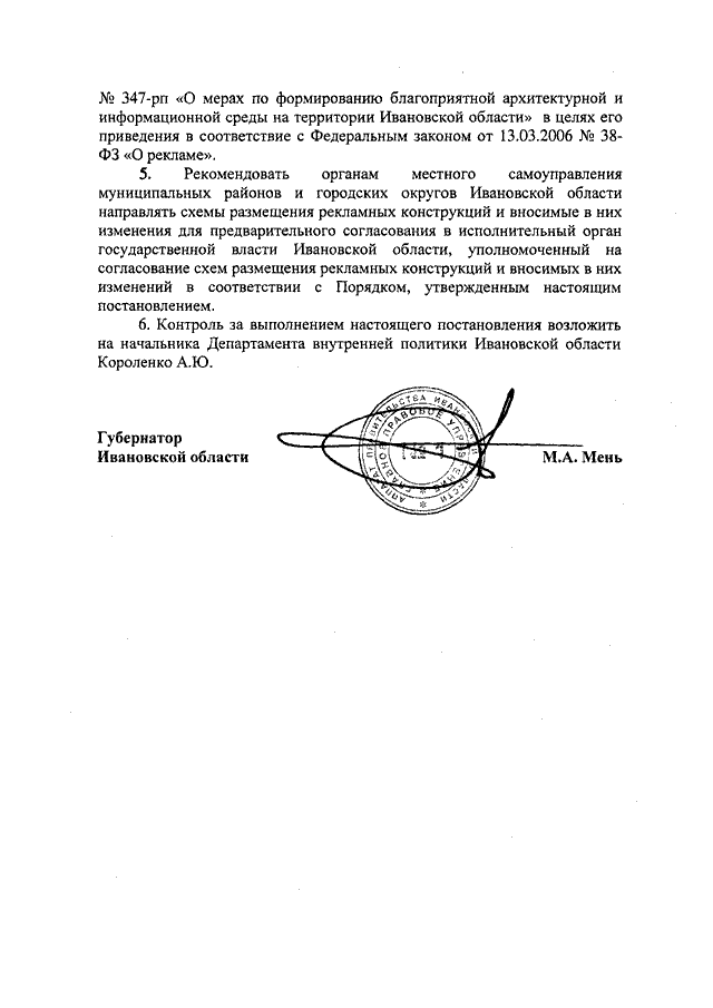 Постановление Правительства Ивановской области от 18.06.2013 N 227-п "О мерах по реализации положений Федерального закона от 13.03.2006 N 38-ФЗ "О рекламе" и о внесении изменений в постановление Правительства Ивановской области от 06.05.2013 N 150-п "Об утверждении Положения о Департаменте внутренней политики Ивановской области" (вместе с "Порядком предварительного согласования схем размещения рекламных конструкций на земельных участках независимо от форм собственности, а также на зданиях или ином недвижимом имуществе, находящихся в собственности Ивановской области или муниципальной собственности, и вносимых в них изменений")