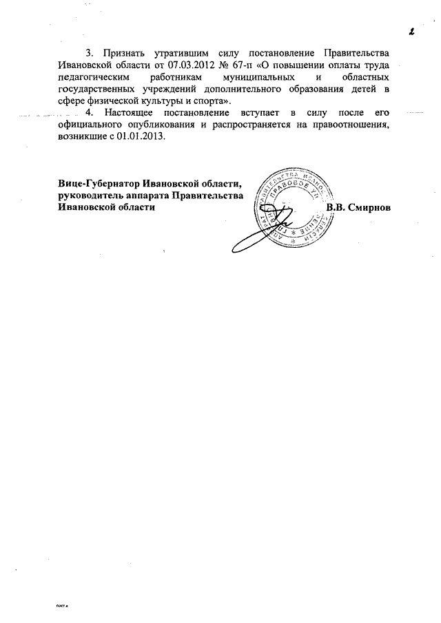 Постановление Правительства Ивановской области от 04.07.2013 N 259-п "О предоставлении из областного бюджета бюджетам муниципальных районов, городских округов Ивановской области субсидий на софинансирование расходов, связанных с поэтапным доведением средней заработной платы педагогическим работникам муниципальных учреждений дополнительного образования детей в сфере физической культуры и спорта до средней заработной платы в Ивановской области" (вместе с "Порядком предоставления и расходования субсидий бюджетам муниципальных районов, городских округов Ивановской области на софинансирование расходных обязательств муниципальных районов, городских округов Ивановской области, возникающих при выполнении полномочий по организации предоставления дополнительного образования детям, в части поэтапного доведения средней заработной платы педагогическим работникам муниципальных учреждений дополнительного образования детей в сфере физической культуры и спорта до средней заработной платы в Ивановской области")