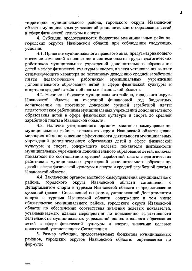 Постановление Правительства Ивановской области от 04.07.2013 N 259-п "О предоставлении из областного бюджета бюджетам муниципальных районов, городских округов Ивановской области субсидий на софинансирование расходов, связанных с поэтапным доведением средней заработной платы педагогическим работникам муниципальных учреждений дополнительного образования детей в сфере физической культуры и спорта до средней заработной платы в Ивановской области" (вместе с "Порядком предоставления и расходования субсидий бюджетам муниципальных районов, городских округов Ивановской области на софинансирование расходных обязательств муниципальных районов, городских округов Ивановской области, возникающих при выполнении полномочий по организации предоставления дополнительного образования детям, в части поэтапного доведения средней заработной платы педагогическим работникам муниципальных учреждений дополнительного образования детей в сфере физической культуры и спорта до средней заработной платы в Ивановской области")