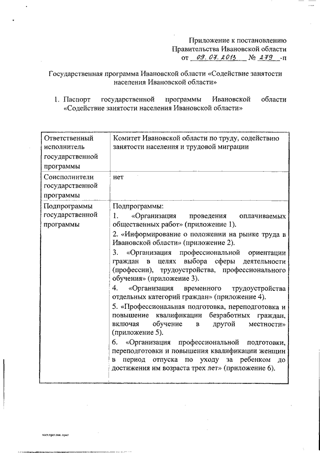 Постановление Правительства Ивановской области от 09.07.2013 N 279-п "Об утверждении государственной программы Ивановской области "Содействие занятости населения Ивановской области"