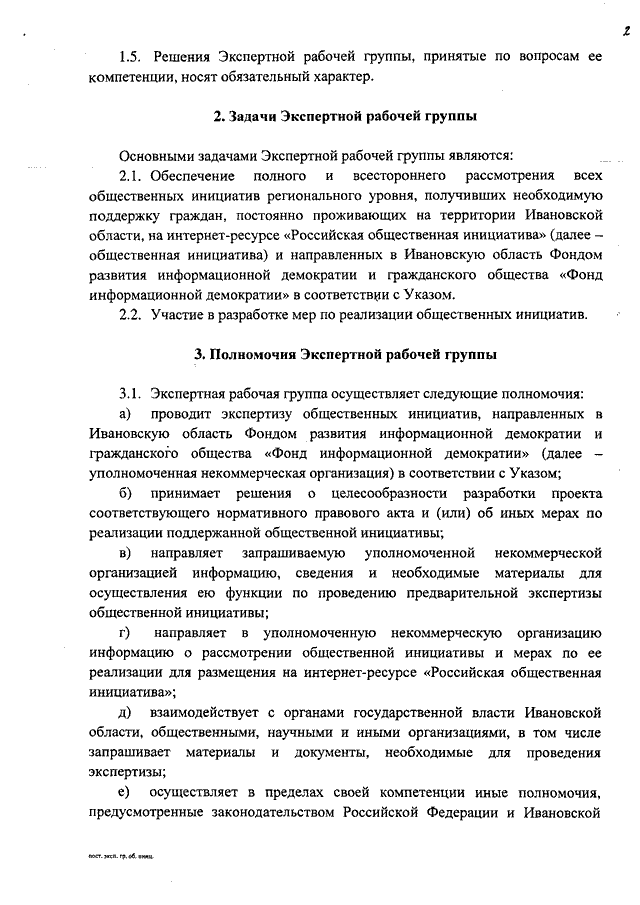 Постановление Правительства Ивановской области от 31.07.2013 N 314-п "Об экспертной рабочей группе Ивановской области по рассмотрению общественных инициатив, направленных гражданами Российской Федерации с использованием интернет-ресурса "Российская общественная инициатива" (вместе с "Положением об экспертной рабочей группе Ивановской области по рассмотрению общественных инициатив, направленных гражданами Российской Федерации с использованием интернет-ресурса "Российская общественная инициатива")