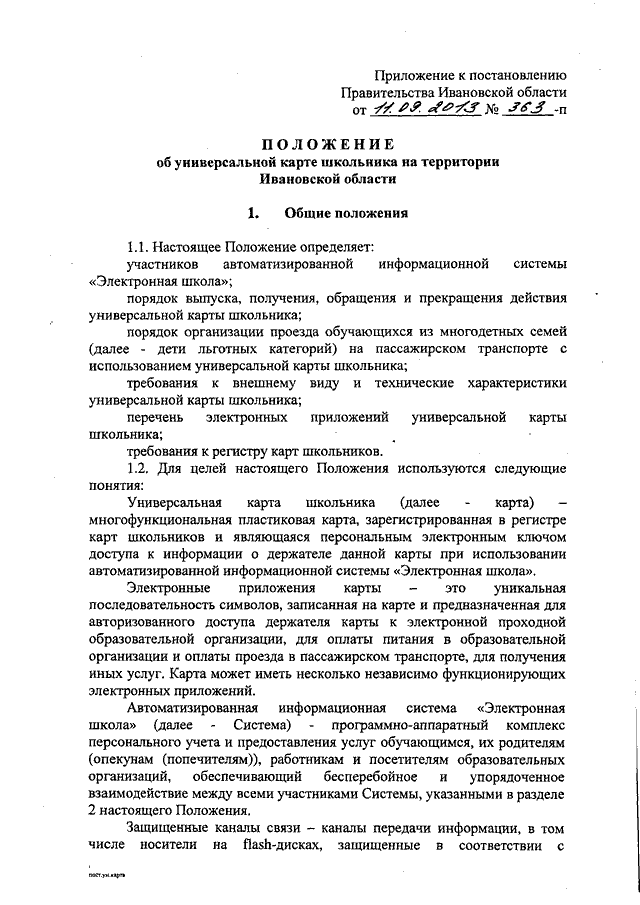 Постановление Правительства Ивановской области от 11.09.2013 N 363-п "Об утверждении Положения об универсальной карте школьника на территории Ивановской области"