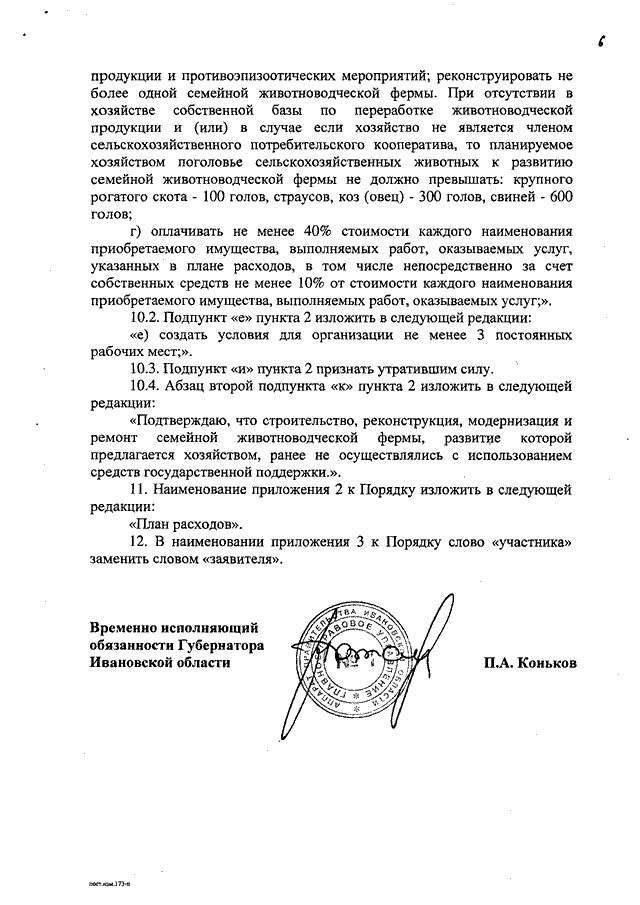 Постановление Правительства Ивановской области от 30.10.2013 N 431-п "О внесении изменений в постановление Правительства Ивановской области от 31.05.2012 N 173-п "Об утверждении Порядка предоставления грантов крестьянским (фермерским) хозяйствам на развитие семейных животноводческих ферм, одним из источников финансового обеспечения которых является субсидия из федерального бюджета"