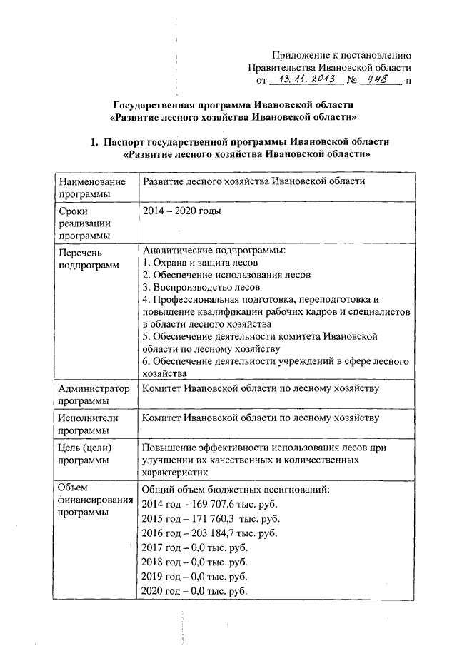 Постановление Правительства Ивановской области от 13.11.2013 N 448-п "Об утверждении государственной программы Ивановской области "Развитие лесного хозяйства Ивановской области" на 2014 - 2020 годы"