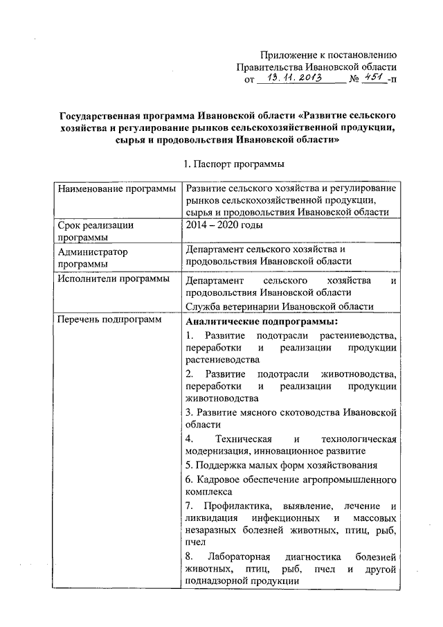 Постановление Правительства Ивановской области от 13.11.2013 N 451-п "Об утверждении государственной программы Ивановской области "Развитие сельского хозяйства и регулирование рынков сельскохозяйственной продукции, сырья и продовольствия Ивановской области"