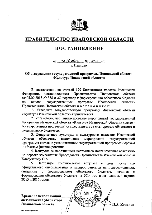 Постановление Правительства Ивановской области от 13.11.2013 N 453-п "Об утверждении государственной программы Ивановской области "Культура Ивановской области"