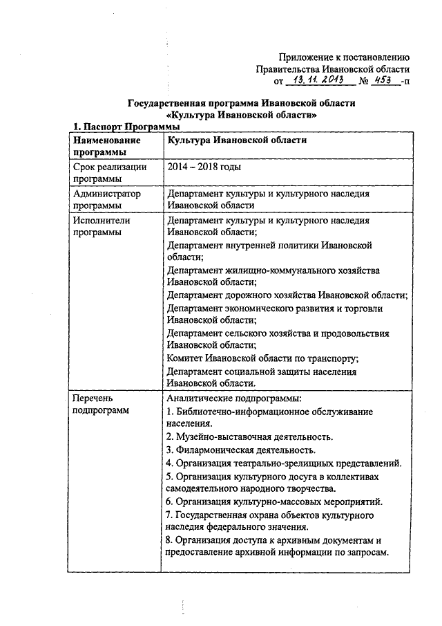 Постановление Правительства Ивановской области от 13.11.2013 N 453-п "Об утверждении государственной программы Ивановской области "Культура Ивановской области"