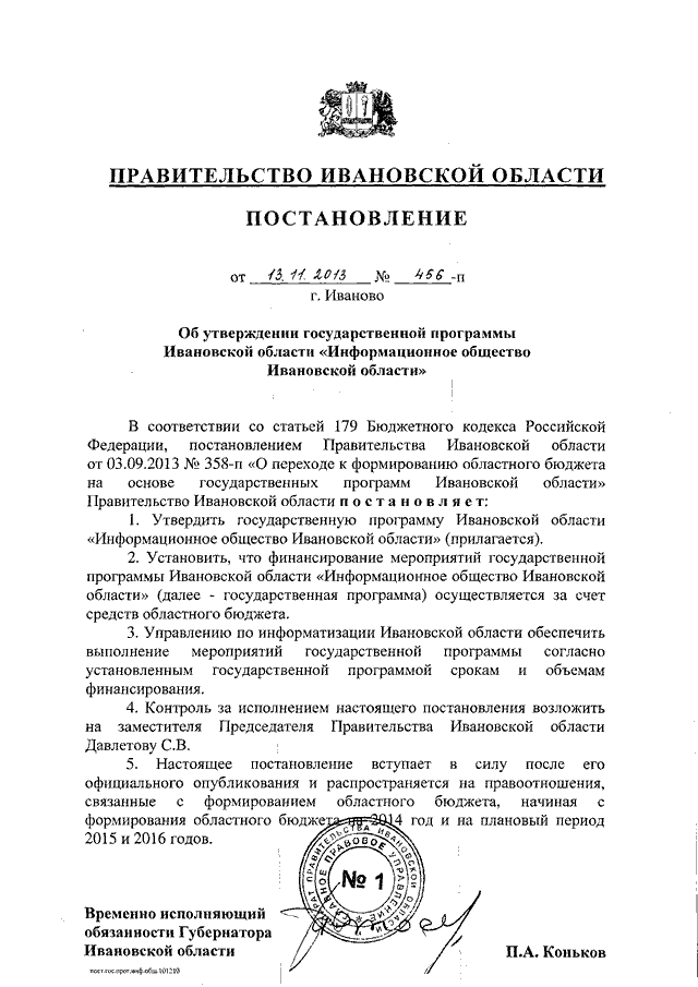 Постановление Правительства Ивановской области от 13.11.2013 N 456-п "Об утверждении государственной программы Ивановской области "Информационное общество Ивановской области"