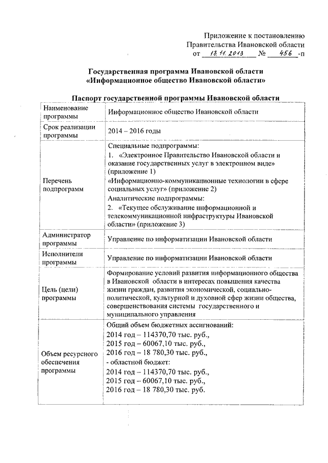 Постановление Правительства Ивановской области от 13.11.2013 N 456-п "Об утверждении государственной программы Ивановской области "Информационное общество Ивановской области"