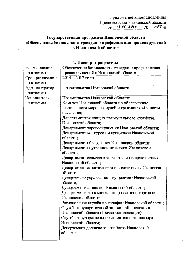 Постановление Правительства Ивановской области от 13.11.2013 N 457-п "Об утверждении государственной программы Ивановской области "Обеспечение безопасности граждан и профилактика правонарушений в Ивановской области"