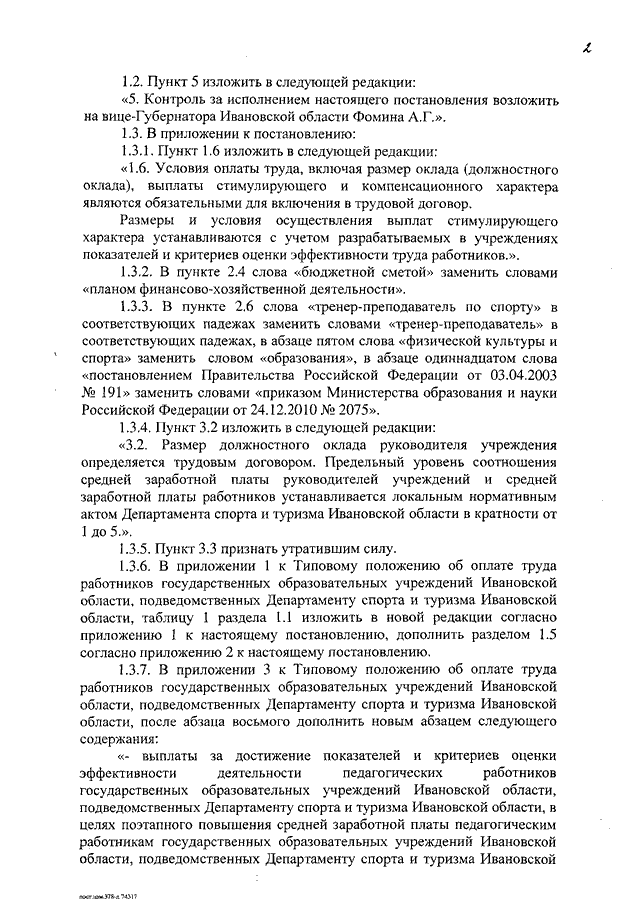 Постановление Правительства Ивановской области от 20.11.2013 N 463-п "О внесении изменений в постановление Правительства Ивановской области от 31.12.2008 N 378-п "О системе оплаты труда работников государственных образовательных учреждений Ивановской области, подведомственных Департаменту спорта и туризма Ивановской области"