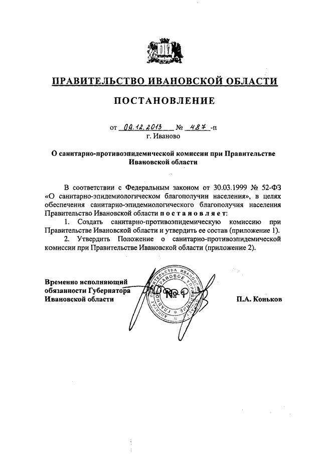 Постановление Правительства Ивановской области от 09.12.2013 N 487-п "О санитарно-противоэпидемической комиссии при Правительстве Ивановской области" (вместе с "Положением о санитарно-противоэпидемической комиссии при Правительстве Ивановской области")