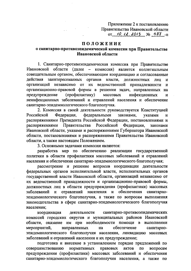 Постановление Правительства Ивановской области от 09.12.2013 N 487-п "О санитарно-противоэпидемической комиссии при Правительстве Ивановской области" (вместе с "Положением о санитарно-противоэпидемической комиссии при Правительстве Ивановской области")