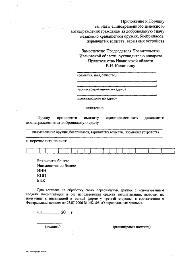 Постановление Правительства Ивановской области от 09.12.2013 N 498-п "О мерах по профилактике правонарушений, борьбе с преступностью и обеспечению безопасности граждан на территории Ивановской области" (вместе с "Порядком выплаты единовременного денежного вознаграждения гражданам за добровольную сдачу незаконно хранящегося оружия, боеприпасов, взрывчатых веществ, взрывных устройств", "Порядком поощрения граждан за участие в охране общественного порядка и за предоставление информации о совершенном или готовящемся тяжком или особо тяжком преступлении")