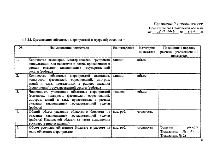 Постановление Правительства Ивановской области от 25.12.2013 N 560-п "О внесении изменений в постановление Правительства Ивановской области от 26.06.2008 N 164-п "Об утверждении перечня показателей, характеризующих оказание (выполнение) государственных услуг (работ) в Ивановской области"