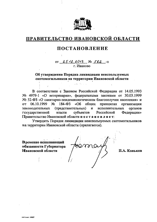 Постановление Правительства Ивановской области от 25.12.2013 N 562-п "Об утверждении Порядка ликвидации неиспользуемых скотомогильников на территории Ивановской области"