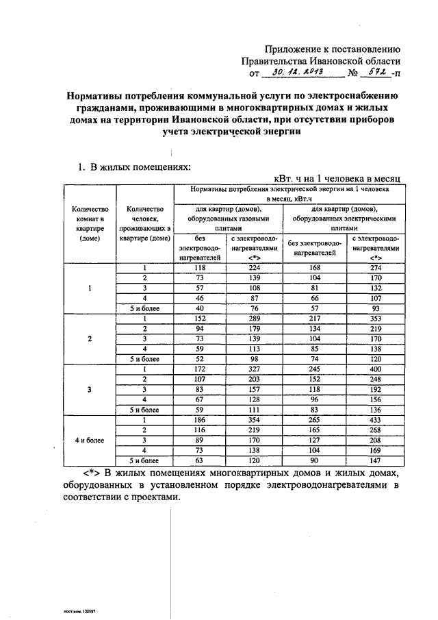 Постановление Правительства Ивановской области от 30.12.2013 N 572-п "Об утверждении нормативов потребления коммунальной услуги по электроснабжению гражданами, проживающими в многоквартирных домах и жилых домах на территории Ивановской области, при отсутствии приборов учета электрической энергии"