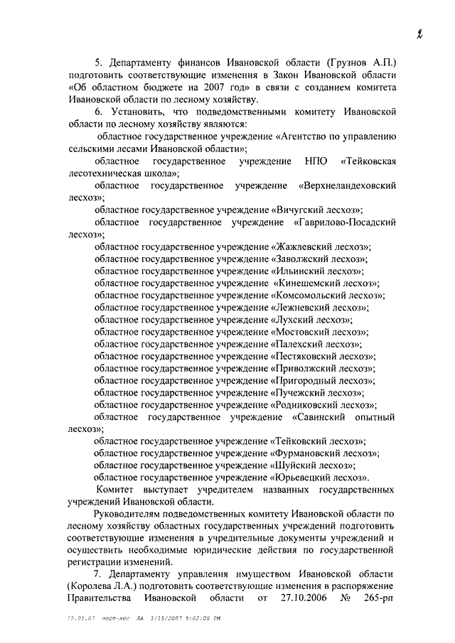 Постановление Правительства Ивановской области от 18.01.2007 N 4-п "О создании комитета Ивановской области по лесному хозяйству" (вместе с "Положением о комитете Ивановской области по лесному хозяйству")