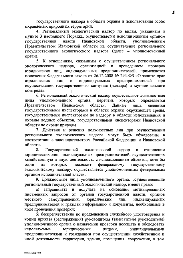 Постановление Правительства Ивановской области от 12.02.2014 N 36-п "Об осуществлении регионального государственного экологического надзора на территории Ивановской области" (вместе с "Порядком организации и осуществления регионального государственного экологического надзора на территории Ивановской области", "Перечнем должностных лиц уполномоченного исполнительного органа государственной власти Ивановской области, осуществляющих региональный государственный экологический надзор на территории Ивановской области")