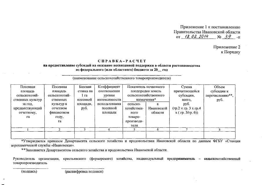 Постановление Правительства Ивановской области от 18.02.2014 N 39-п "О внесении изменений в постановление Правительства Ивановской области от 20.03.2013 N 106-п "Об утверждении Порядка предоставления субсидий на оказание несвязанной поддержки сельскохозяйственным товаропроизводителям в области растениеводства"