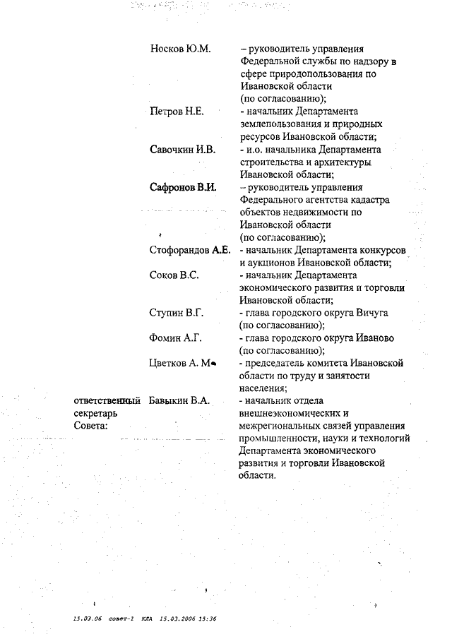 Постановление Правительства Ивановской области от 15.03.2006 N 37-п "О создании Межведомственного совета по размещению производительных сил и инвестиций на территории Ивановской области" (вместе с "Положением о Межведомственном совете по размещению производительных сил и инвестиций на территории Ивановской области")