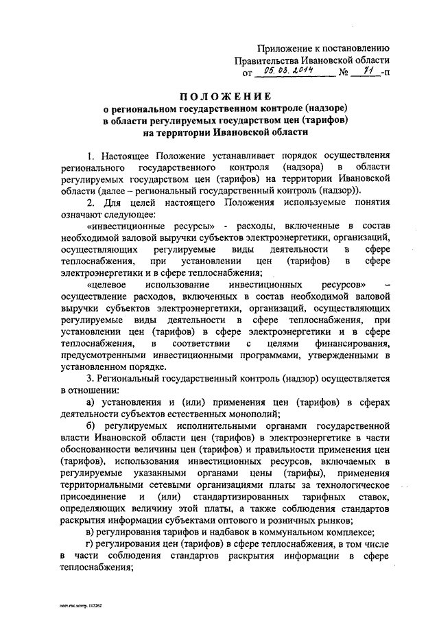Постановление Правительства Ивановской области от 05.03.2014 N 71-п "О региональном государственном контроле (надзоре) в области регулируемых государством цен (тарифов) на территории Ивановской области" (вместе с "Положением о региональном государственном контроле (надзоре) в области регулируемых государством цен (тарифов) на территории Ивановской области")