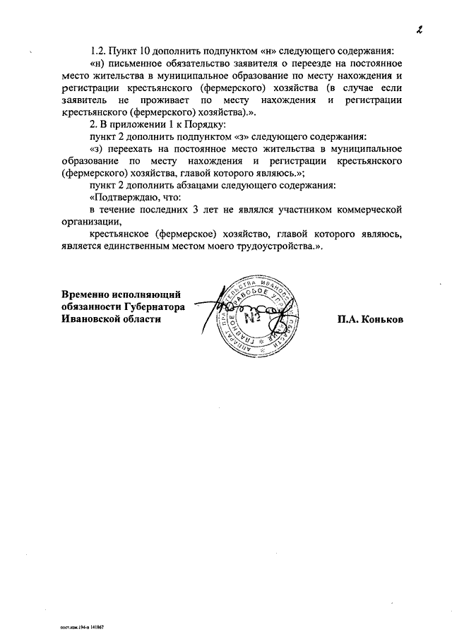 Постановление Правительства Ивановской области от 05.03.2014 N 73-п "О внесении изменений в постановление Правительства Ивановской области от 08.06.2012 N 194-п "Об утверждении Порядка предоставления начинающим фермерам грантов на создание и развитие крестьянского (фермерского) хозяйства и единовременной помощи на бытовое обустройство, одним из источников финансового обеспечения которых является субсидия из федерального бюджета"
