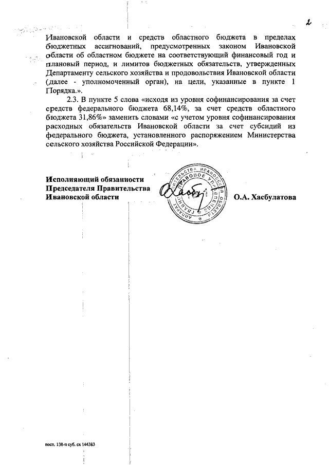 Постановление Правительства Ивановской области от 18.03.2014 N 91-п "О внесении изменений в постановление Правительства Ивановской области от 15.05.2012 N 138-п "Об утверждении Порядка предоставления субсидий на возмещение части затрат крестьянских (фермерских) хозяйств, включая индивидуальных предпринимателей, при оформлении в собственность используемых ими земельных участков из земель сельскохозяйственного назначения, одним из источников финансового обеспечения которых является субсидия из федерального бюджета"