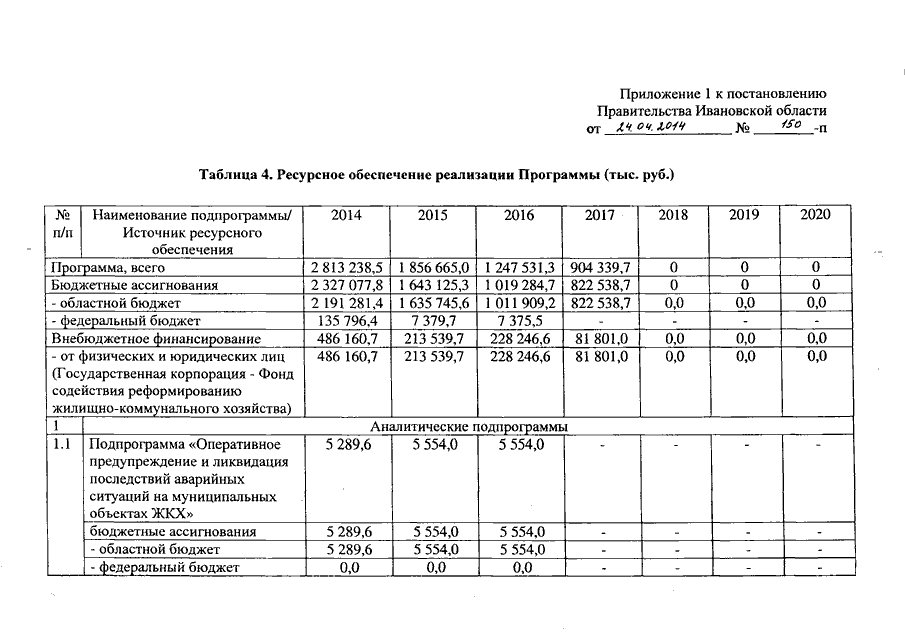 Постановление Правительства Ивановской области от 24.04.2014 N 150-п "О внесении изменений в постановление Правительства Ивановской области от 13.11.2013 N 458-п "Об утверждении государственной программы Ивановской области "Обеспечение доступным и комфортным жильем, объектами инженерной инфраструктуры и услугами жилищно-коммунального хозяйства населения Ивановской области" (вместе с "Подпрограммой "Переселение граждан из аварийного жилищного фонда на территории Ивановской области")