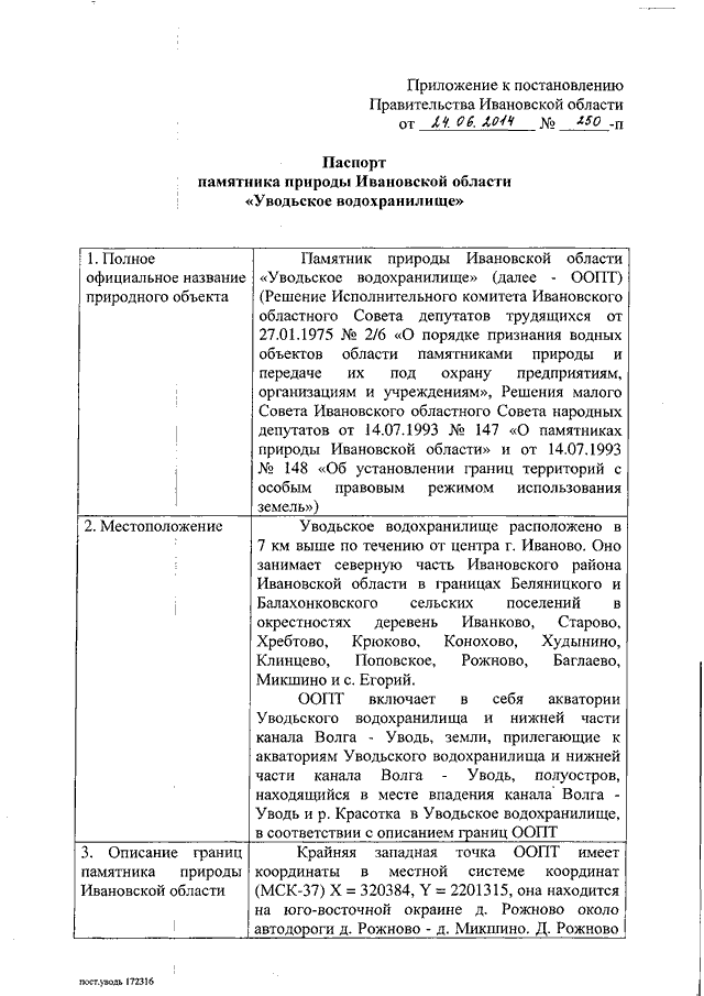 Постановление Правительства Ивановской области от 24.06.2014 N 250-п "О памятнике природы Ивановской области "Уводьское водохранилище" (вместе с "Паспортом памятника природы Ивановской области "Уводьское водохранилище")