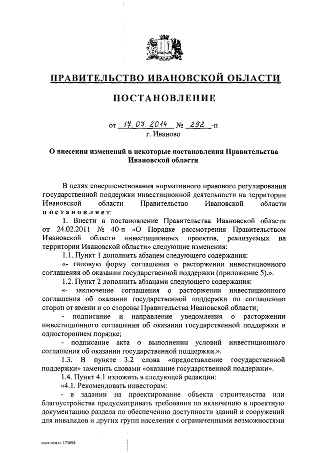 Постановление Правительства Ивановской области от 17.07.2014 N 292-п "О внесении изменений в некоторые постановления Правительства Ивановской области"