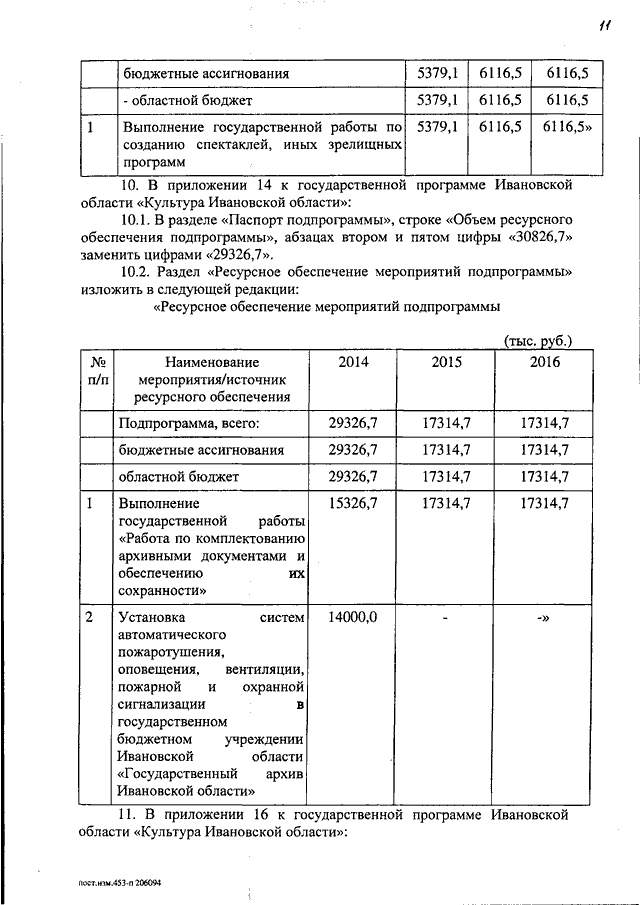 Постановление Правительства Ивановской области от 21.08.2014 N 367-п "О внесении изменений в постановление Правительства Ивановской области от 13.11.2013 N 453-п "Об утверждении государственной программы Ивановской области "Культура Ивановской области" (вместе с "Подпрограммой "К культуре через культурный досуг", "Подпрограммой "Театральная среда и фестивальное движение")