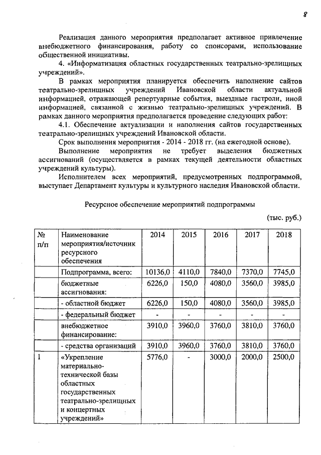 Постановление Правительства Ивановской области от 21.08.2014 N 367-п "О внесении изменений в постановление Правительства Ивановской области от 13.11.2013 N 453-п "Об утверждении государственной программы Ивановской области "Культура Ивановской области" (вместе с "Подпрограммой "К культуре через культурный досуг", "Подпрограммой "Театральная среда и фестивальное движение")