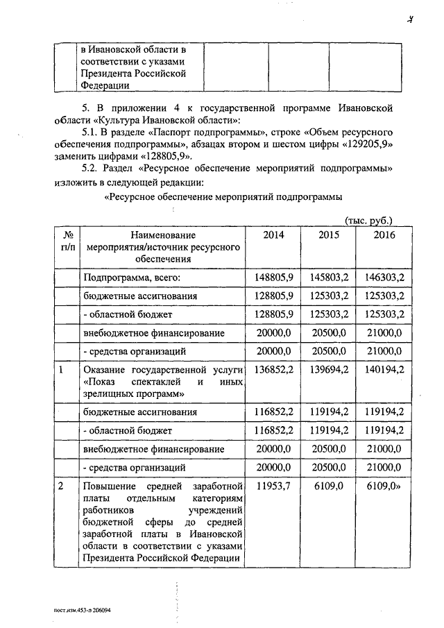 Постановление Правительства Ивановской области от 21.08.2014 N 367-п "О внесении изменений в постановление Правительства Ивановской области от 13.11.2013 N 453-п "Об утверждении государственной программы Ивановской области "Культура Ивановской области" (вместе с "Подпрограммой "К культуре через культурный досуг", "Подпрограммой "Театральная среда и фестивальное движение")
