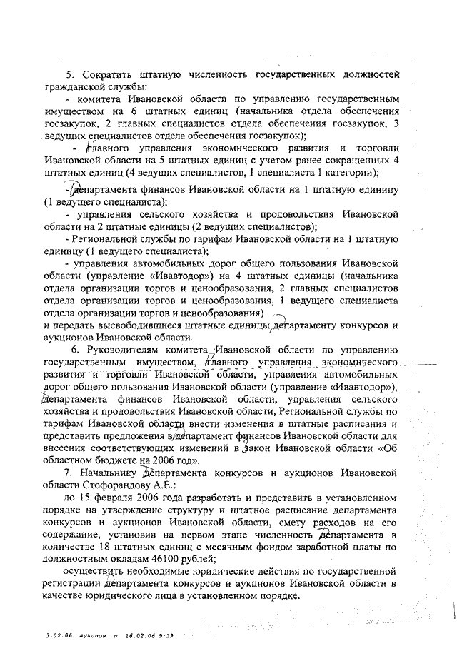 Постановление Правительства Ивановской области от 15.02.2006 N 10-п "О создании Департамента конкурсов и аукционов Ивановской области" (вместе с "Положением о Департаменте конкурсов и аукционов Ивановской области", "Положением о порядке взаимодействия уполномоченного органа на осуществление функций по размещению заказов для государственных заказчиков Ивановской области и государственных заказчиков Ивановской области")