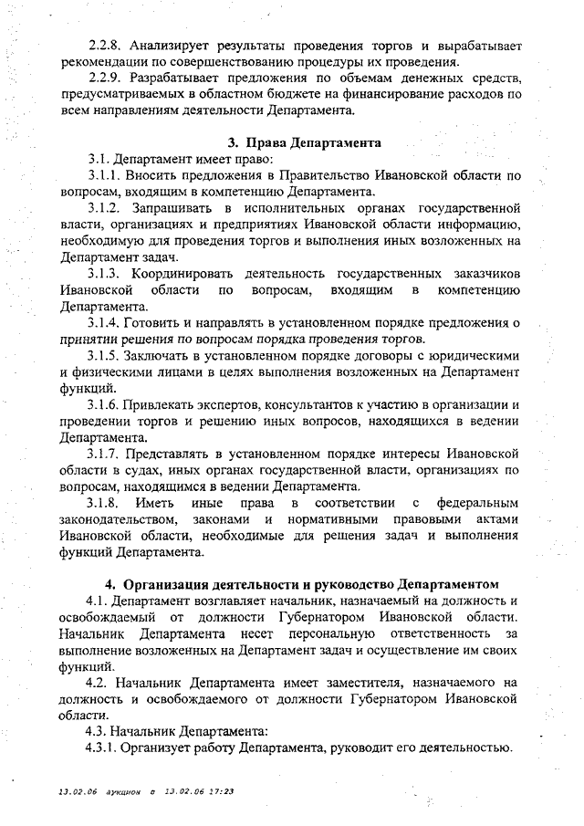 Постановление Правительства Ивановской области от 15.02.2006 N 10-п "О создании Департамента конкурсов и аукционов Ивановской области" (вместе с "Положением о Департаменте конкурсов и аукционов Ивановской области", "Положением о порядке взаимодействия уполномоченного органа на осуществление функций по размещению заказов для государственных заказчиков Ивановской области и государственных заказчиков Ивановской области")
