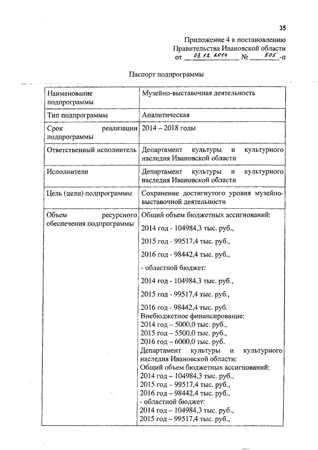 Постановление Правительства Ивановской области от 03.12.2014 N 505-п "О внесении изменений в постановление Правительства Ивановской области от 13.11.2013 N 453-п "Об утверждении государственной программы Ивановской области "Культура Ивановской области" (вместе с "Паспортом подпрограммы")
