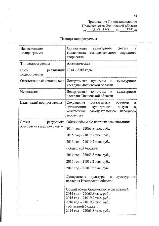 Постановление Правительства Ивановской области от 03.12.2014 N 505-п "О внесении изменений в постановление Правительства Ивановской области от 13.11.2013 N 453-п "Об утверждении государственной программы Ивановской области "Культура Ивановской области" (вместе с "Паспортом подпрограммы")