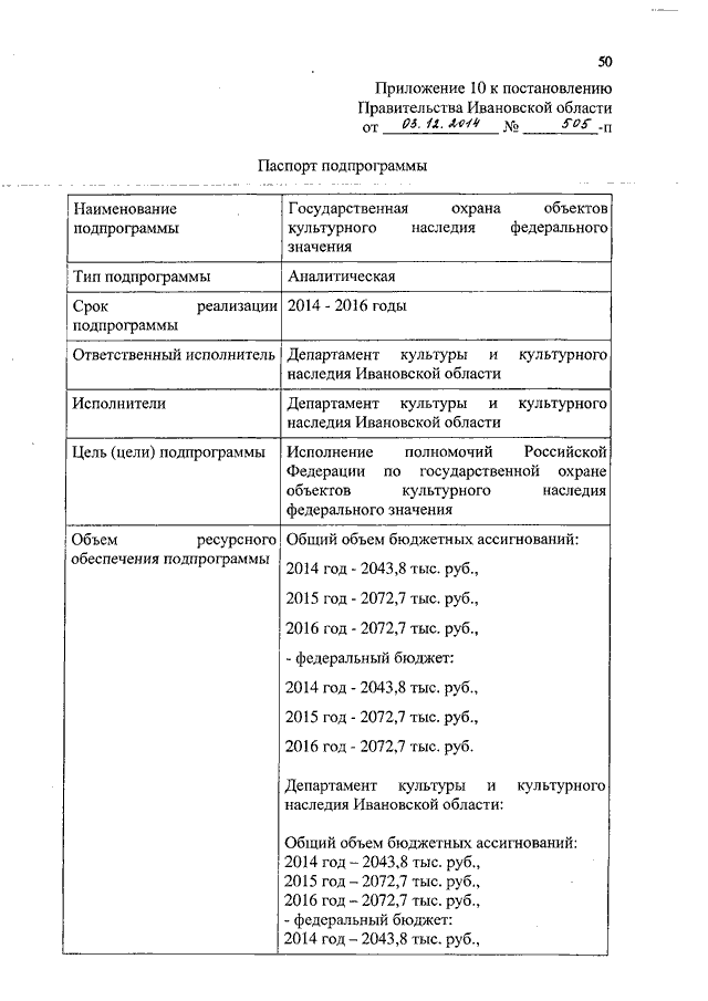 Постановление Правительства Ивановской области от 03.12.2014 N 505-п "О внесении изменений в постановление Правительства Ивановской области от 13.11.2013 N 453-п "Об утверждении государственной программы Ивановской области "Культура Ивановской области" (вместе с "Паспортом подпрограммы")