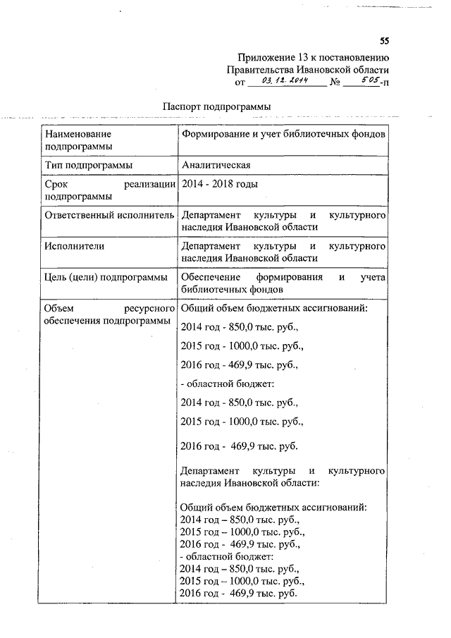Постановление Правительства Ивановской области от 03.12.2014 N 505-п "О внесении изменений в постановление Правительства Ивановской области от 13.11.2013 N 453-п "Об утверждении государственной программы Ивановской области "Культура Ивановской области" (вместе с "Паспортом подпрограммы")