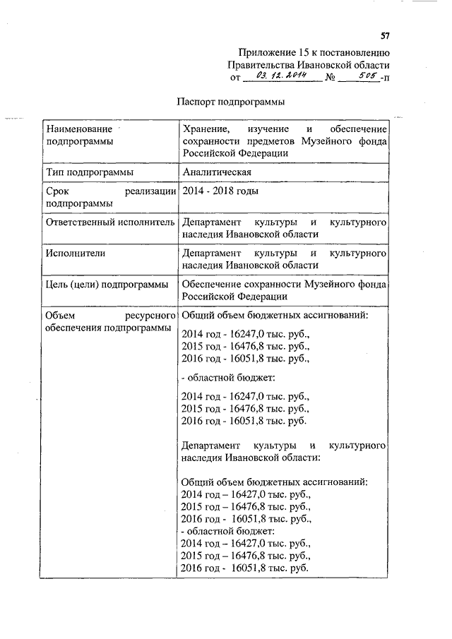 Постановление Правительства Ивановской области от 03.12.2014 N 505-п "О внесении изменений в постановление Правительства Ивановской области от 13.11.2013 N 453-п "Об утверждении государственной программы Ивановской области "Культура Ивановской области" (вместе с "Паспортом подпрограммы")
