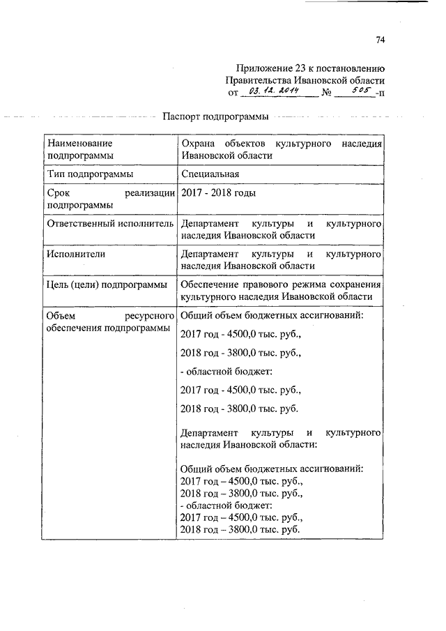Постановление Правительства Ивановской области от 03.12.2014 N 505-п "О внесении изменений в постановление Правительства Ивановской области от 13.11.2013 N 453-п "Об утверждении государственной программы Ивановской области "Культура Ивановской области" (вместе с "Паспортом подпрограммы")