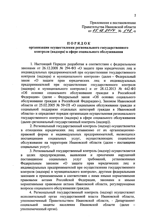 Постановление Правительства Ивановской области от 05.12.2014 N 508-п "Об утверждении Порядка организации осуществления регионального государственного контроля (надзора) в сфере социального обслуживания"