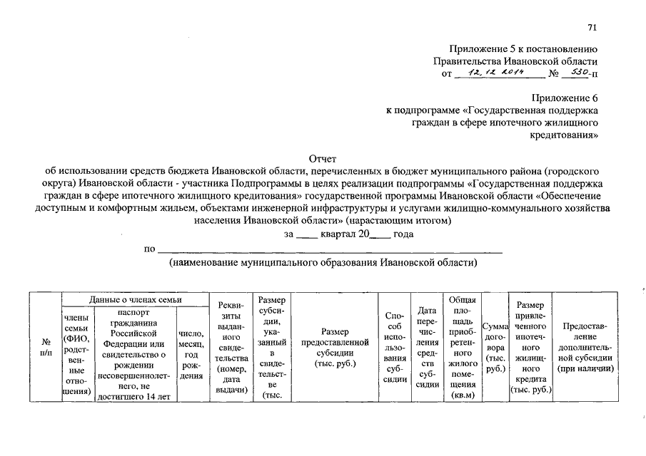 Постановление Правительства Ивановской области от 12.12.2014 N 530-п "О внесении изменений в постановление Правительства Ивановской области от 13.11.2013 N 458-п "Об утверждении государственной программы Ивановской области "Обеспечение доступным и комфортным жильем, объектами инженерной инфраструктуры и услугами жилищно-коммунального хозяйства населения Ивановской области"