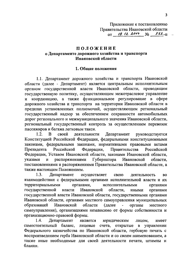 Постановление Правительства Ивановской области от 19.12.2014 N 562-п "Об утверждении Положения о Департаменте дорожного хозяйства и транспорта Ивановской области и признании утратившими силу некоторых постановлений Правительства Ивановской области"