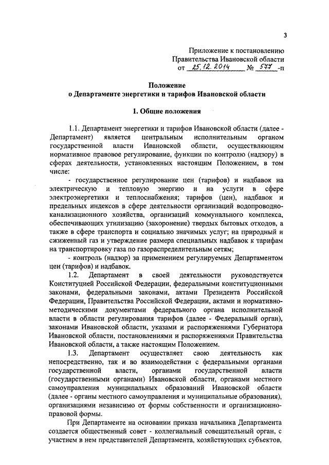 Постановление Правительства Ивановской области от 25.12.2014 N 577-п "Об утверждении Положения о Департаменте энергетики и тарифов Ивановской области"