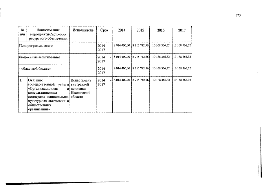 Постановление Правительства Ивановской области от 31.12.2014 N 591-п "О внесении изменений в постановление Правительства Ивановской области от 13.11.2013 N 454-п "Об утверждении государственной программы Ивановской области "Совершенствование институтов государственного управления и местного самоуправления Ивановской области" (вместе с "Подпрограммой "Обеспечение деятельности органов государственной власти Ивановской области", "Подпрограммой "Информационная открытость органов государственной власти Ивановской области", "Подпрограммой "Общественный контроль и экспертная поддержка органов государственной власти Ивановской области", "Подпрограммой "Поддержка социально ориентированных некоммерческих организаций", "Подпрограммой "Укрепление кадрового потенциала государственной службы Ивановской области", "Подпрограммой "Организация дополнительного пенсионного обеспечения отдельных категорий граждан", "Подпрограммой "Вручение государственных наград Российской Федерации, наград Ивановской области и выплата вознаграждений к ним, выплата премий к Почетным грамотам и других премий", "Подпрограммой "Эффективный муниципалитет", "Подпрограммой "Оценка регулирующего воздействия", "Подпрограммой "Организация предоставления государственных и муниципальных услуг на базе областного государственного бюджетного учреждения "Многофункциональный центр предоставления государственных и муниципальных услуг", "Подпрограммой "Организационная и консультационная поддержка национально-культурных автономий и общественных организаций", "Подпрограммой "Обеспечение деятельности мировых судей и аппаратов мировых судей Ивановской области")